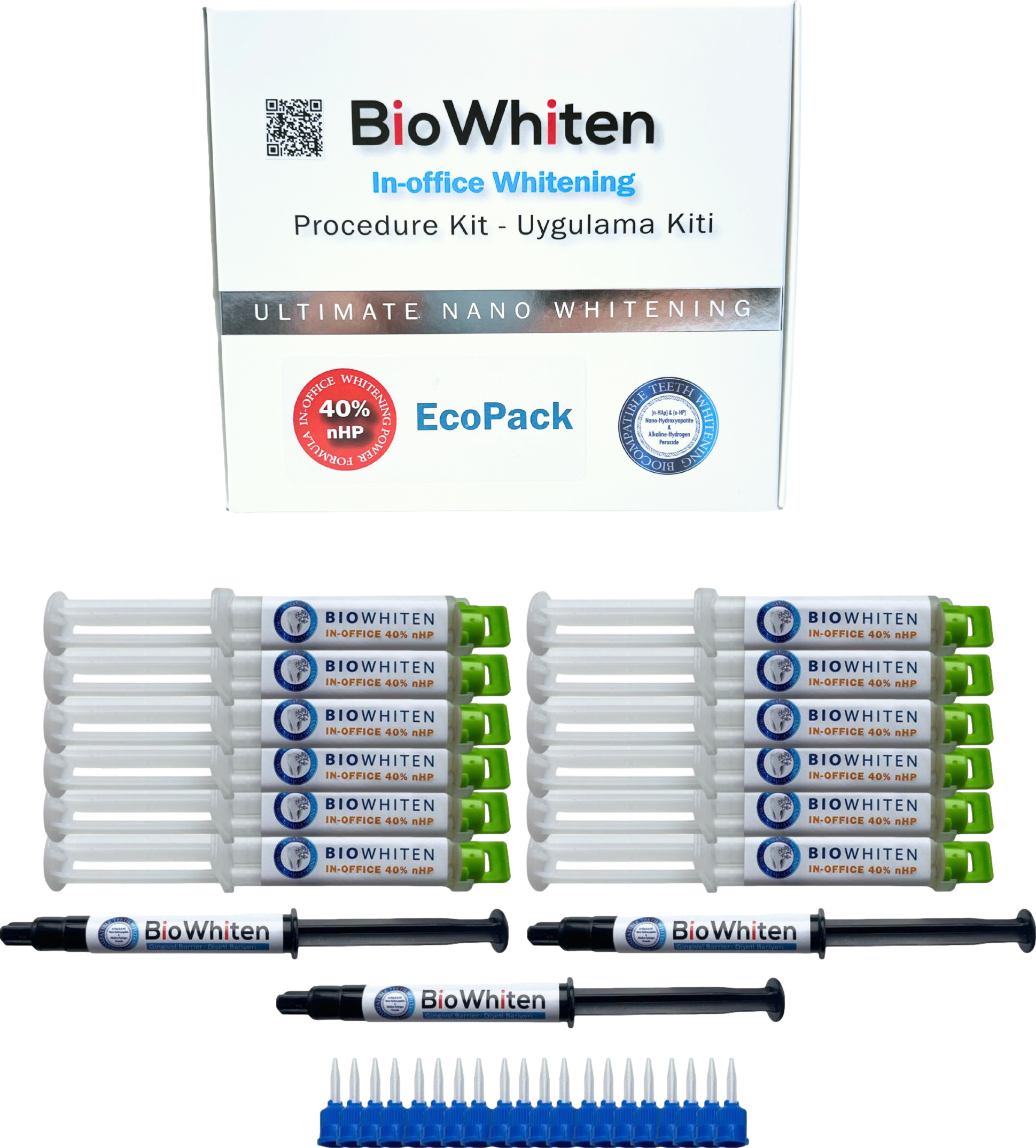 Bio-Whiten Ofis Tipi Beyazlatma Seti, diş hekimliği kliniklerinde profesyonel uygulamalar için geliştirilmiş ofis tipi diş beyazlatma sistemidir.