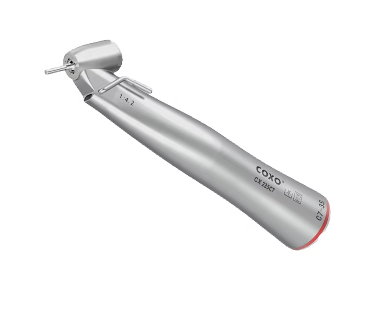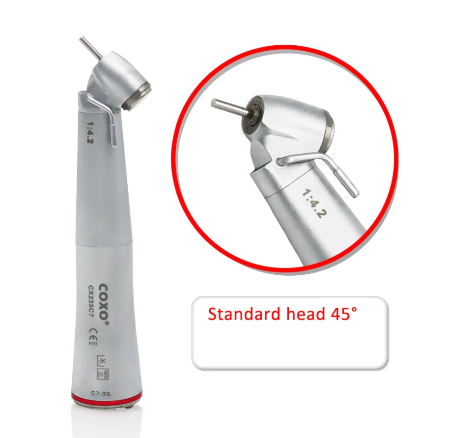 Coxo CX235C7 45° Açılı Anguldruva, diş hekimliği uygulamalarında özellikle cerrahi ve endodontik işlemler için tasarlanmış profesyonel bir dental el aletidir. 45° açılı kafa yapısı, zor erişilen bölgelerde mükemmel görüş ve kontrol sağlar, bu da cihazı özellikle cerrahi ekstraksiyon ve üçüncü molar operasyonlarında ideal hale getirir.