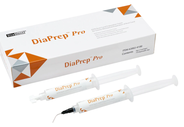 DiaDent DiaPrep Pro EDTA Jel, kök kanal tedavilerinde kanal duvarındaki smear tabakasını temizlemek ve dentin tübüllerini açmak için kullanılan 15% EDTA (Etilen Diamin Tetraasetik Asit) bazlı bir jeldir.