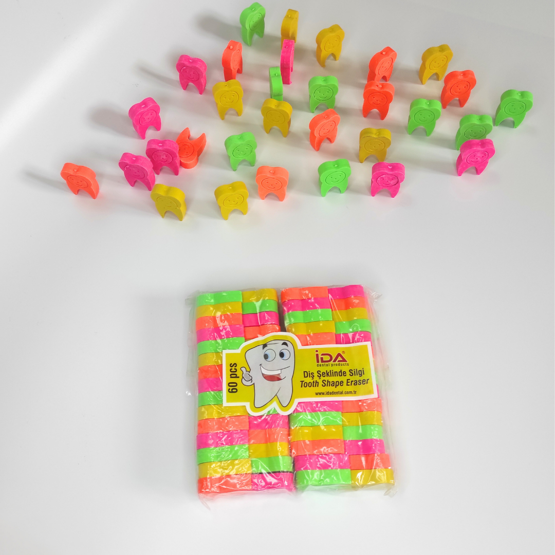 • 1 Paket 60'lı Diş Şeklinde Silgi