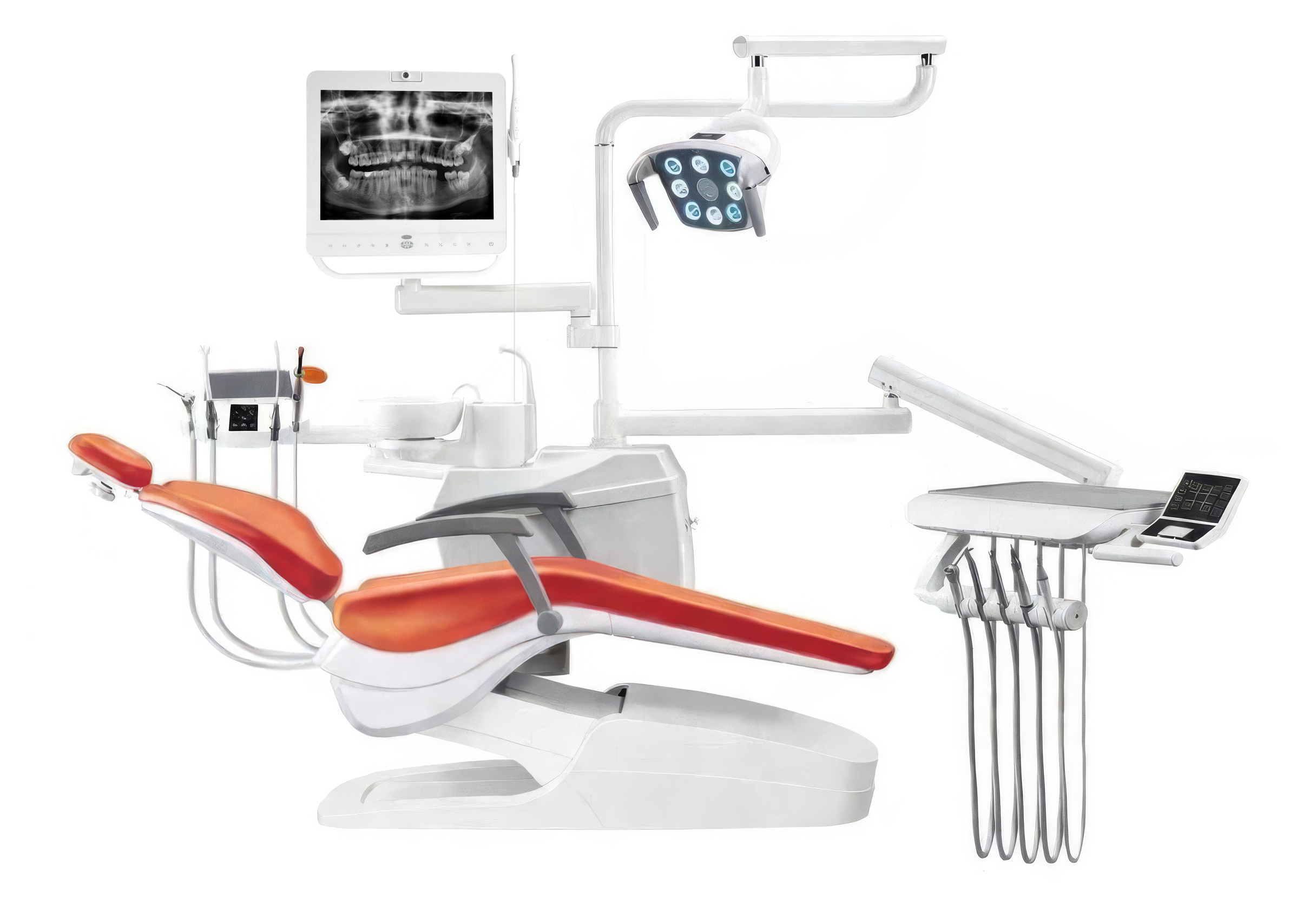 Foshan CX2305 Dental Unit, genel diş hekimliği uygulamaları için tasarlanmış, ergonomik ve fonksiyonel donanıma sahip elektrikli dental ünittir.