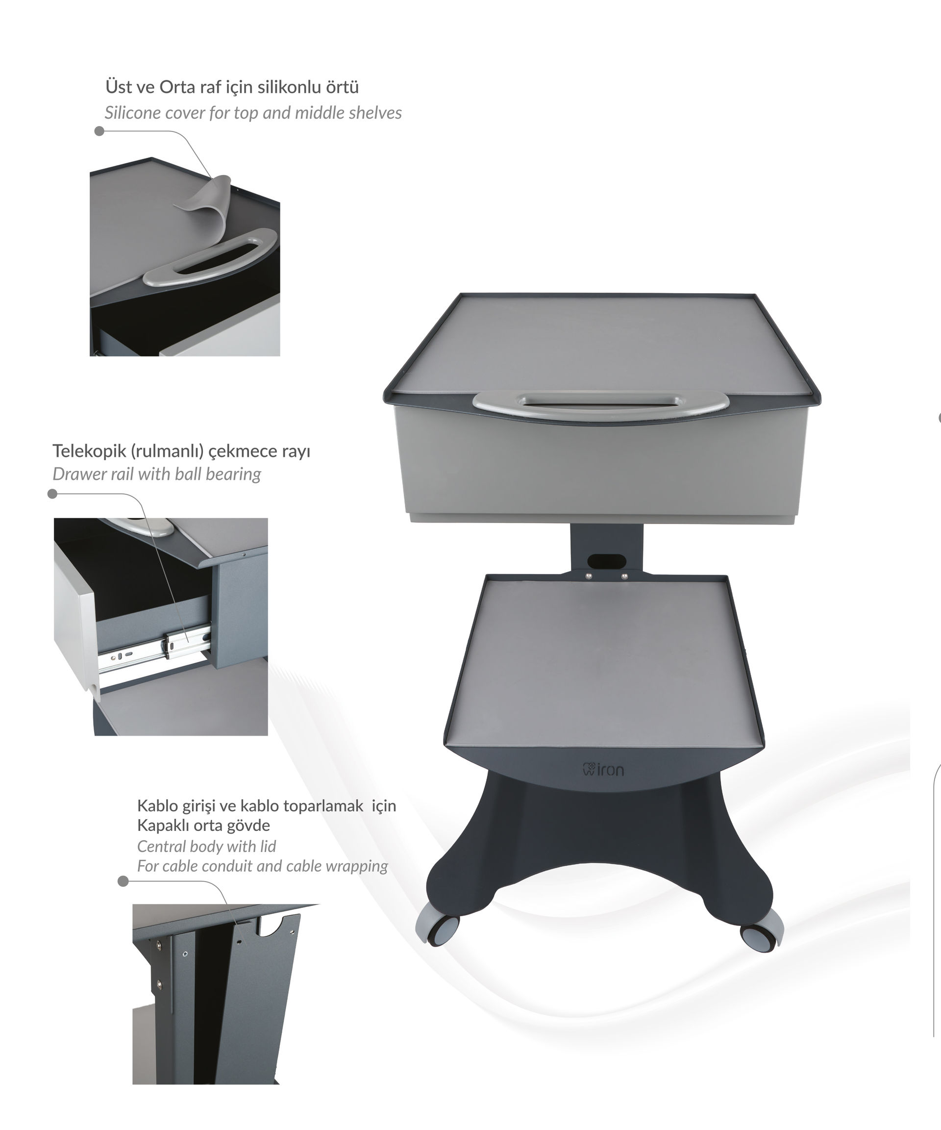 İron Tek Çekmeceli Dental HCS-01 Fizyo Sehpası - Tarayıcı Sehpası