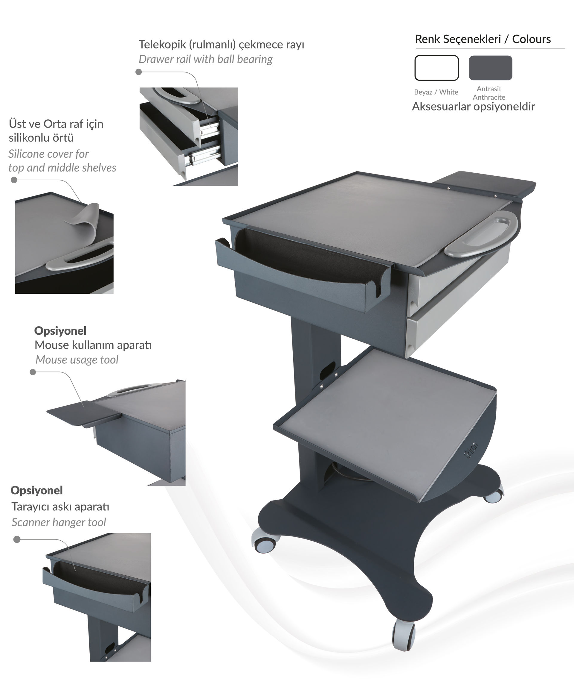 İron Tek Çekmeceli Dental HCS-02 Fizyo Sehpası - Tarayıcı Sehpası