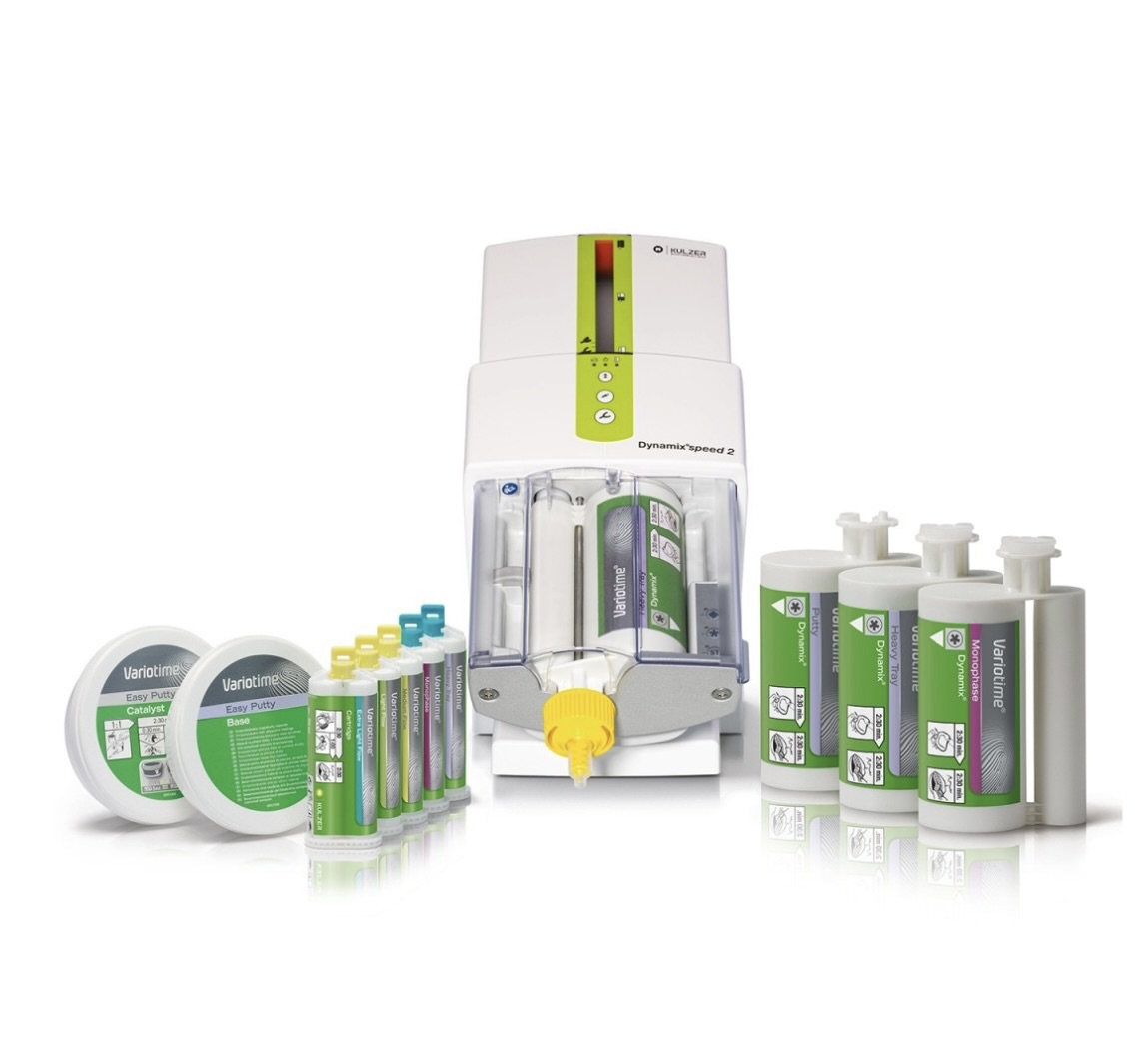 Kulzer Variotime Dynamix Speed, A-silikon ölçü materyallerini otomatik olarak karıştırarak homojen ve hatasız karışım sağlayan profesyonel silikon karıştırma cihazıdır.