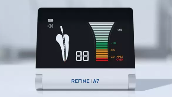 Refine A7 Apex Bulucu, endodonti tedavilerinde kök kanal uzunluğunu hassas ve güvenilir şekilde belirlemek için geliştirilmiş dijital bir ölçüm cihazıdır. Gelişmiş elektronik ölçüm teknolojisi sayesinde kanal boyunu net olarak hesaplar, aşırı preparasyonu engeller ve tedavi başarısını artırır.