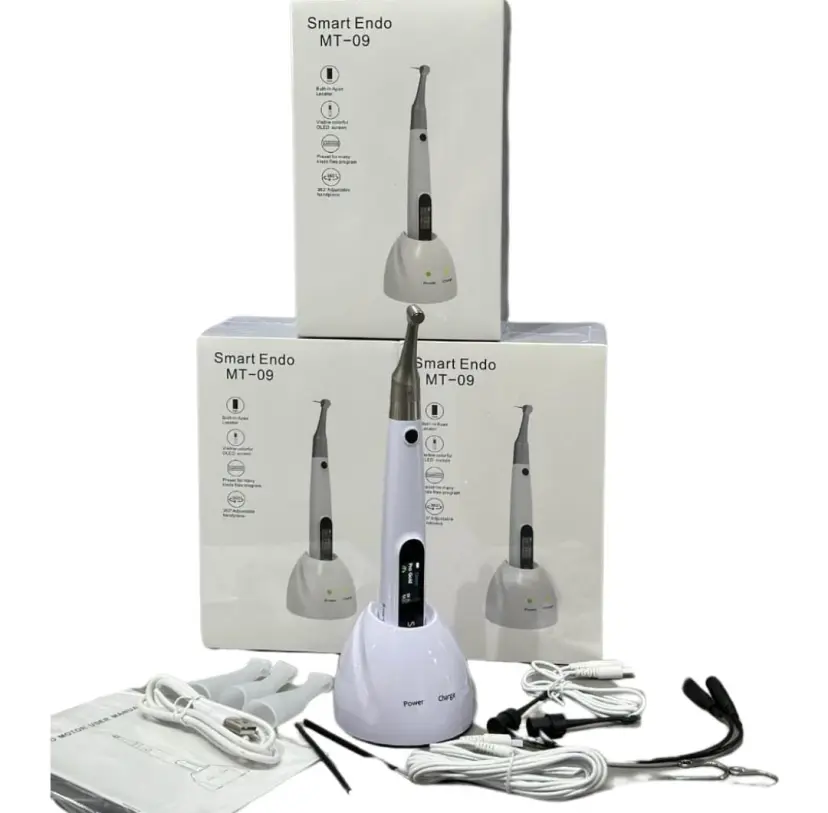 Smart Endo MT-09, kök kanal tedavilerinde yüksek hassasiyet ve operasyonel konfor sunmak üzere tasarlanmış, dahili Apex Locator (apeks bulucu) sistemine sahip profesyonel bir endomotor cihazıdır. Kompakt tasarımı ve özelleştirilebilir çalışma modları ile endodontik prosedürlerde güvenli ve stabil bir performans sağlar.