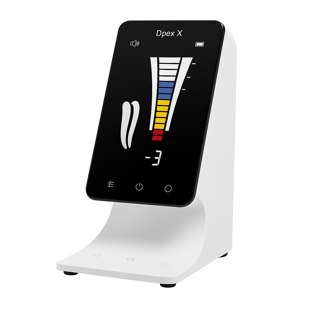 Ürün Açıklaması Woodpecker Dpex X MHN, apex locator ve Micro Hole Negotiator (MHN) modunu tek cihazda birleştirir. Bir tuşla mod değiştirme özelliği ile gizli, kalsifiye veya disk şeklindeki kök kanallarını tespit eder. ±0.1 mm ölçüm hassasiyeti, kan, pulpa ve irigasyon solüsyonu varlığında çalışır. 3.8 inç renkli LCD ekran gerçek zamanlı görselleştirme sağlar, ekran açısı ayarlanabilir. 7 saat kesintisiz kullanım, 3 saatte tam şarj (3.7V 2000 mAh Li-ion pil). MHN özel probu ile orifice finder modu. Sesli ve görsel uyarılar, ayarlanabilir apical stop. Endo motora entegrasyon uyumlu. Ağırlık: 185 g.