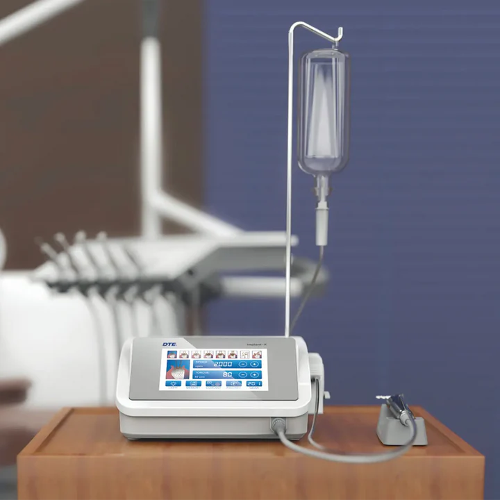 Woodpecker DTE Implant-X Fizyodispenser, dental implant cerrahilerinde yüksek hassasiyet ve güvenlik sağlamak amacıyla geliştirilmiş profesyonel bir cerrahi motor sistemidir. Güçlü motor yapısı sayesinde implant yerleştirme ve kemik frezleme işlemlerinde stabil tork ve kontrollü hız sunar.