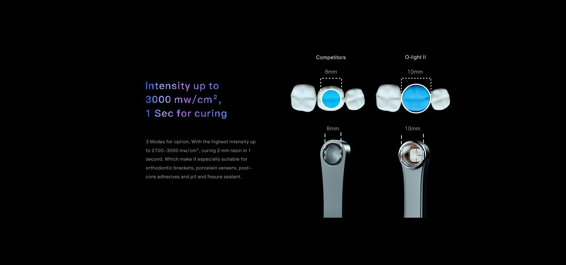 restoratif diş hekimliği uygulamalarında farklı ışıkla sertleşen materyallerin etkin ve homojen şekilde polimerizasyonunu sağlamak üzere geliştirilmiştir. Çift dalga boylu LED ışık teknolojisi sayesinde hem kamforokinon bazlı klasik kompozitleri hem de yeni nesil alternatif fotoinisiyatör içeren materyalleri güvenle sertleştirebilir. Bu özellik, kliniklerde farklı marka ve tipte kompozitlerle sorunsuz uyum sunar.