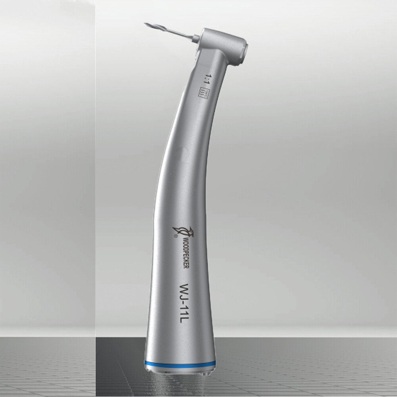 Woodpecker WJ-11L Işıklı Mavi Kuşak Anguldruva, diş hekimliği uygulamalarında yüksek hassasiyet ve güvenilirlik sağlayan 1:1 düz çevirim oranına sahip profesyonel bir dental anguldruva başlıktır.
